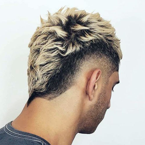 If you like the mohawk style and cannot maintain proper or good length, try this spiky style here. The fade is done in two different degrees on the sides and the back to get a blended look. Keep the beard trimmed for a classic look.