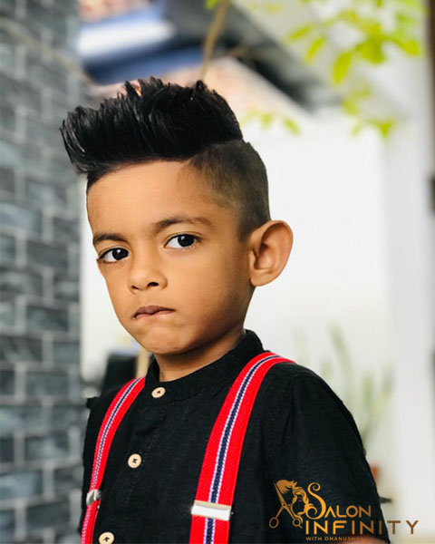 Upright Haircut: This classic hairstyle is perfect for Indian school boys who want a clean and polished look. The hair is cut short on the sides and back, while the top is styled straight up for a sleek and modern appearance.
